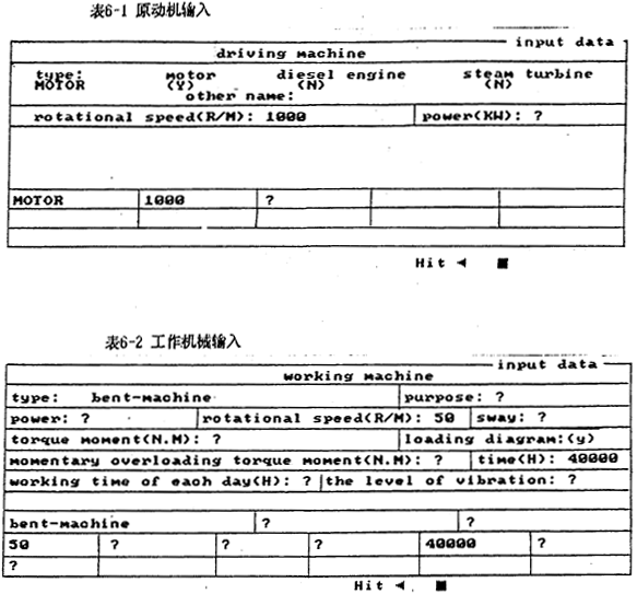 系統(tǒng)的輸入是專家系統(tǒng)的“開場條件”,人工設(shè)計的方法是由定貨單位向設(shè)計人員提供任務(wù)書(以口頭或書面形式),設(shè)計人員通過這些已知條件進行設(shè)計工作。專家系統(tǒng)則要求設(shè)計人員(或由定貨人員)與計算機進行“對話”,以便使專家系統(tǒng)了解原始的已知條件。事實上,由于受人工智能和計算機技術(shù)發(fā)展的限制,還不能同計算機形成視、聽對話,因而,圓柱齒輪減速器設(shè)計專家系統(tǒng)仍采用傳統(tǒng)CAD所采用的方法,即采用精確的輸入方式(或稱數(shù)據(jù)輸入方式而非語言物入方式)。