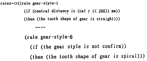 規(guī)則l的條件項,初次使用時,由于中心距尚未確定,不能觸發(fā)運用。系統(tǒng)采用的方法是先用初次選用的齒形參與傳動計算,待求出中心距時再次調(diào)用該規(guī)則集進行推理。若于原來的假設(shè)發(fā)生沖突,撤銷原假設(shè)并以新事實重新進行計算。