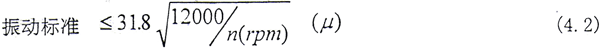 根據(jù)文獻(xiàn)[9],機(jī)組振動(dòng)都是以軸承的振動(dòng)為標(biāo)準(zhǔn),設(shè)備制造驗(yàn)收標(biāo)準(zhǔn)以美國(guó)API、日立、GB、FB(風(fēng)機(jī)專業(yè)標(biāo)準(zhǔn))順序執(zhí)行。其中API617—1979中2.8.25節(jié)關(guān)于轉(zhuǎn)軸(靠近軸承的任何截面)振動(dòng)標(biāo)準(zhǔn)