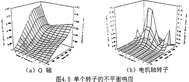 (2)分別在G軸、齒輪聯(lián)軸器和電機(jī)軸上存在不平衡量,計(jì)算了耦合系統(tǒng)的不平衡響應(yīng)。計(jì)算結(jié)果見圖4.6a~4.6c。