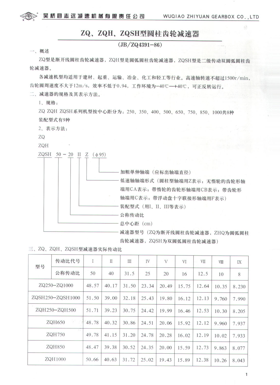 ZQ,ZQH,ZQSH型齒輪減速機 |