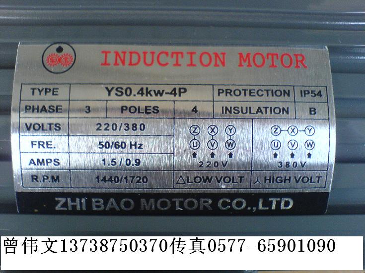 ZHI BAO MOTOR CO.,溫州祺強(qiáng)機(jī)電設(shè)備有限公司(曾偉文13738750370,0577-65901090)是代理臺(tái)灣名牌減速電機(jī)的工業(yè)器材公司... 2019-1-26 |