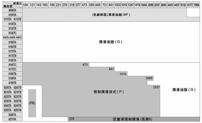 因為下表所列各型號潤滑油均已在出廠前為您裝潢,故您可直接使用,而不必再加油。
