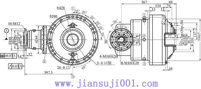 NS3-63.2錐齒輪行星齒輪減速器型式與尺寸