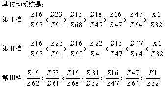 本調(diào)速箱采用全齒輪傳動(dòng),軸端均由滾動(dòng)軸支承,終端由蝸輪付輸出。箱體由上下箱體組成,下部為齒輪箱,上部為蝸輪箱。上箱殼有觀察孔,油路指示圖可觀察蝸付的運(yùn)轉(zhuǎn)情況。機(jī)內(nèi)可通過(guò)換檔手柄撥動(dòng)三聯(lián)齒輪進(jìn)行三檔變速。由于采用雙速電機(jī),因此終端輸出可有六種速度。