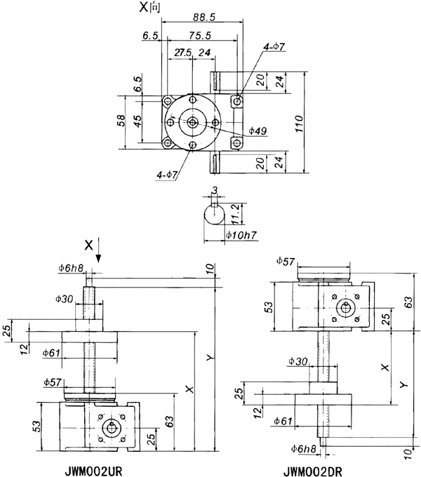 JWM型(梯形絲桿型)適用于低速、低頻率的場合,主要構(gòu)成部件為:精密梯形絲桿副與主精度蝸輪蝸桿副。
