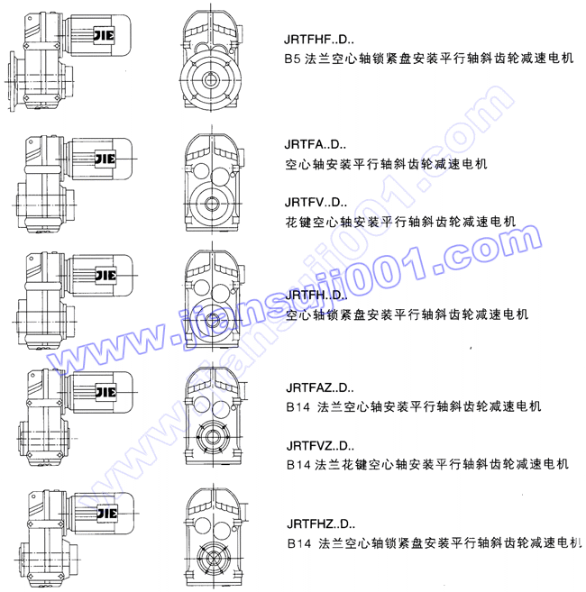 以下是平行軸斜齒輪減速器與交流(帶制動)電機的組合列表。表中給出了每種組合的速比范圍。