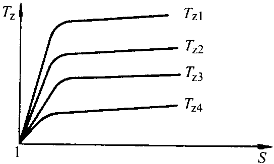 YTDT系列電動(dòng)機(jī)的轉(zhuǎn)矩、轉(zhuǎn)速特性(T-S曲線)(見(jiàn)圖1);電動(dòng)機(jī)采用能耗制動(dòng)時(shí)的特性曲線(低速時(shí)繞組通以不同的直流電可獲得不同的制動(dòng)轉(zhuǎn)矩)(見(jiàn)圖2)。
