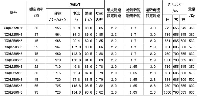 YXQR系列電動機外殼防護(hù)等級為IP23。電動機為臥式安裝,借底腳安裝在基礎(chǔ)件上。電動機的轉(zhuǎn)子自成回路,無集電環(huán)、電刷,不需要任何起動設(shè)備,但卻具有比傳統(tǒng)繞線式電動機更加優(yōu)越的起動性能。