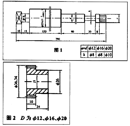 芯軸分析:油缸修復(fù)后,我們曾按照隨機芯軸圖樣(如圖l )加工一批芯軸(外徑已加大0.005mm) ,但加工出的齒輪存在同樣的問題:在我們一一排除了墊圈的平行度,刀具刃磨誤差等因素后,確定問題出在芯軸上。檢查加工后的齒輪發(fā)現(xiàn)兩個問題:一是有的齒輪齒厚不一,齒面寬窄不同,而只有在齒輪加工時齒輪偏離了機床中心才會出現(xiàn)這種情況,說明齒輪在加工時壓緊不牢。二是有的齒輪只是徑向跳動δej 或光潔度差,出現(xiàn)這種情況說明芯軸本身剛性不足,導(dǎo)致加工時產(chǎn)生振動。